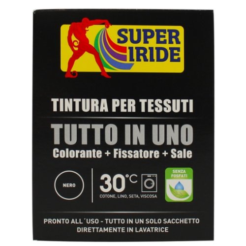 Super Iride Nero è perfetto per dare nuova vita ai capi sbiaditi o per creare un look fresco e deciso con un nero intenso e brillante.