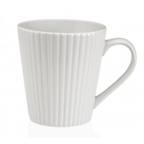 La tazza rilievo righe da 350ml è un elemento distintivo del servizio da tavola, realizzata in ceramica per garantire resistenza e isolamento termico.
