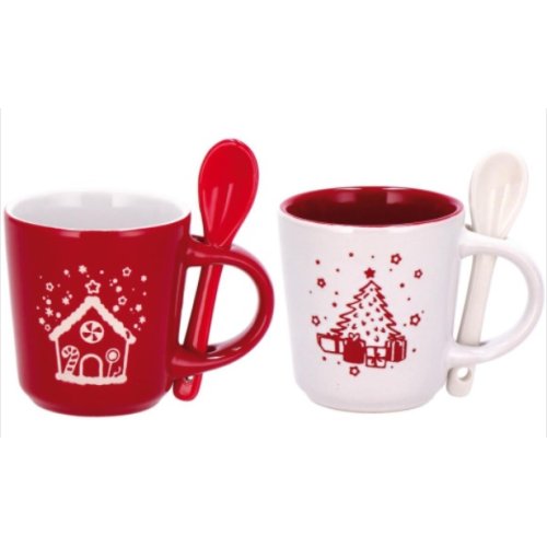 NATALE - TAZZA + CUCCHIAIO IN CERAMICA CORBY - COLORI ASSORTITI