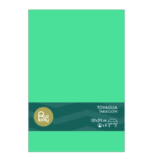 La tovaglia in plastica 137x274 cm di Qui Party è una scelta pratica ed elegante per eventi all'aperto, compleanni o cerimonie a tema. Il suo colore verde vivace aggiunge un tocco di freschezza alla tavola, mentre il materiale impermeabile garantisce facilità di pulizia e resistenza
