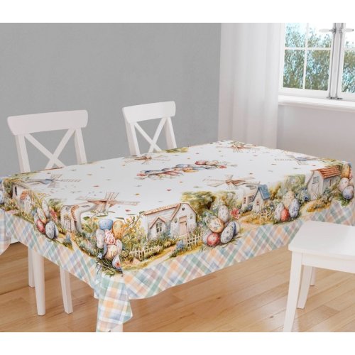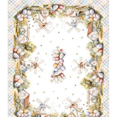 a tovaglia Tiffany Disegno 3 di Vingi Ricami è l'elemento perfetto per chi cerca un'estetica ricercata e gioiosa per il pranzo di Pasqua. Questo modello si distingue per una stampa digitale piazzata ad alta definizione, con un pattern esclusivo (Dis. 3) che fonde armoniosamente i simboli della tradizione pasquale con delicati elementi floreali primaverili.