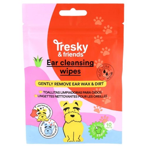 TRESKY & FRIENDS Ear Cleansing Wipes sono salviette detergenti specifiche per la pulizia del condotto uditivo esterno di cani e gatti, progettate per rimuovere cerume e sporco in modo sicuro e delicato.Questo prodotto della linea Pet Care di Tresky & Friends è un alleato fondamentale per la prevenzione di irritazioni e cattivi odori nelle orecchie degli animali domestici.
