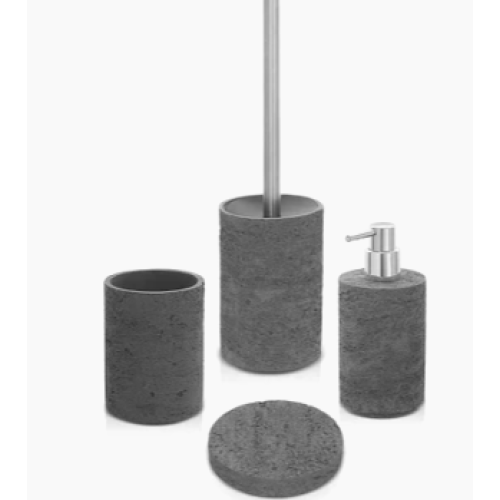 Elementi del tris: di norma un dispenser (es. sapone), un porta‑spazzolini, e un portasapone o accessorio coordinato (verificare esatta composizione del set).