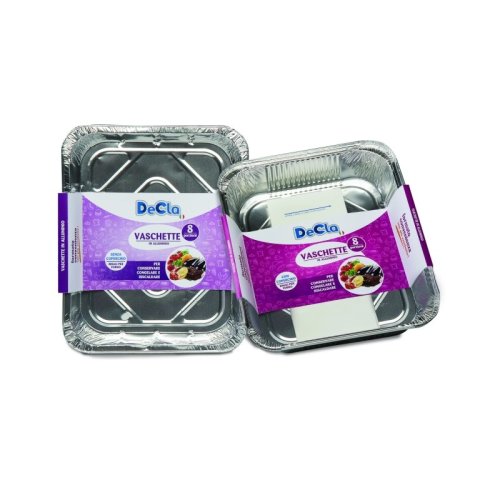 Le Slim Ego Decla vaschette in alluminio da 8 porzioni sono contenitori resistenti, pratici e ideali per la preparazione, conservazione e trasporto di grandi quantità di alimenti. Perfette per cottura in forno e conservazione in freezer, queste vaschette sono adatte per uso professionale (catering, ristorazione, take-away) e domestico. Il formato da 8 porzioni consente una gestione ottimale delle quantità per eventi, pasti familiari o servizi di consegna.
