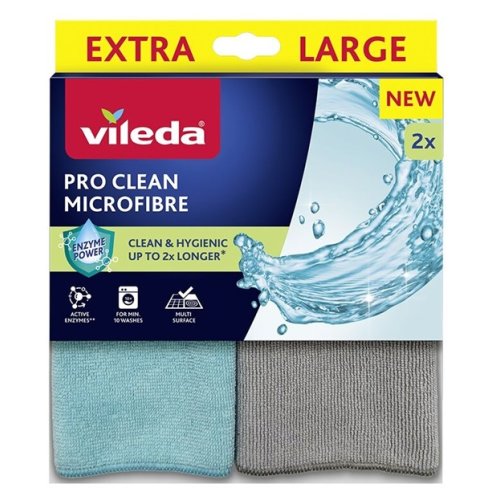 Panno in Microfibra Vileda Pro Clean – pulizia impeccabile senza detergenti! Grazie agli enzimi attivi, rimane igienico anche dopo 10 lavaggi.