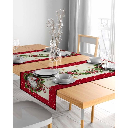 Realizzato in tessuto di alta qualità, questo elegante runner natalizio è decorato con un allegro Babbo Natale e dettagli festivi che donano calore e atmosfera alle tue cene delle feste.
