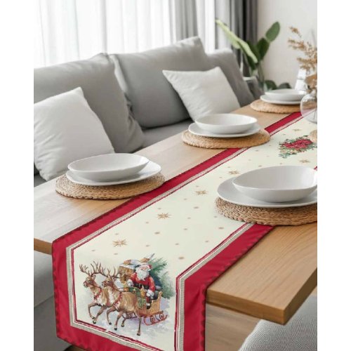 Il runner “SLITTA” misura 45 cm di larghezza e 140 cm di lunghezza, ideale per conferire alla tavola un’atmosfera festiva e raffinata durante il periodo natalizio.